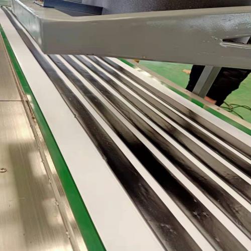 Ⅱ、擠出工藝:強(qiáng)制喂料機(jī)——JDL-120單螺桿擠出機(jī)—---模具接口------橡膠模具-----10米橡膠輸送帶-------下覆膜裝置------JDL-300mm切片系統(tǒng)------雙工位收卷機(jī)------主機(jī)控制采用:PLC控制
